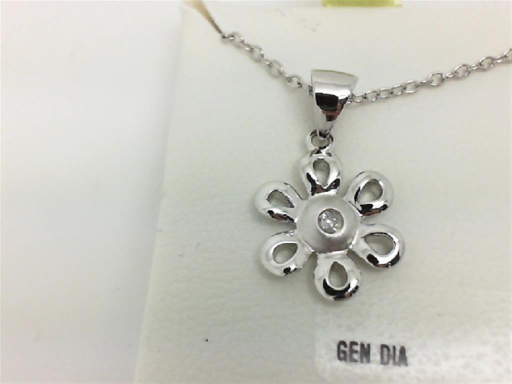 STERLING SILVER DAISY PENDANT WITH ONE ROUND DIAMOND