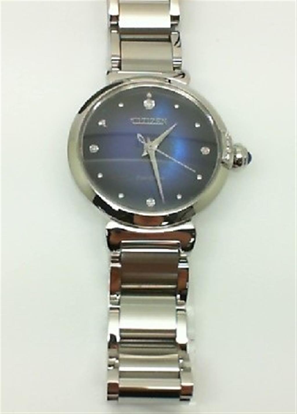 LADY'S ECO DRIVE WATCH - A STAINLESS STEEL CASE IN A SILVER-TONE, SYNTHETIC SAPPHIRE-SET CROWN AND INTEGRATED BRACELET.