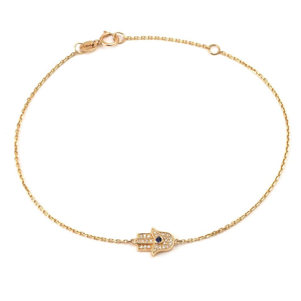 LADY'S YELLOW 14 KARAT HAND BRACELET LENGTH 8 WITH = 0.08TW ROUND SINGLE CUT DIAMONDS AND ONE ROUND SAPPHIRE