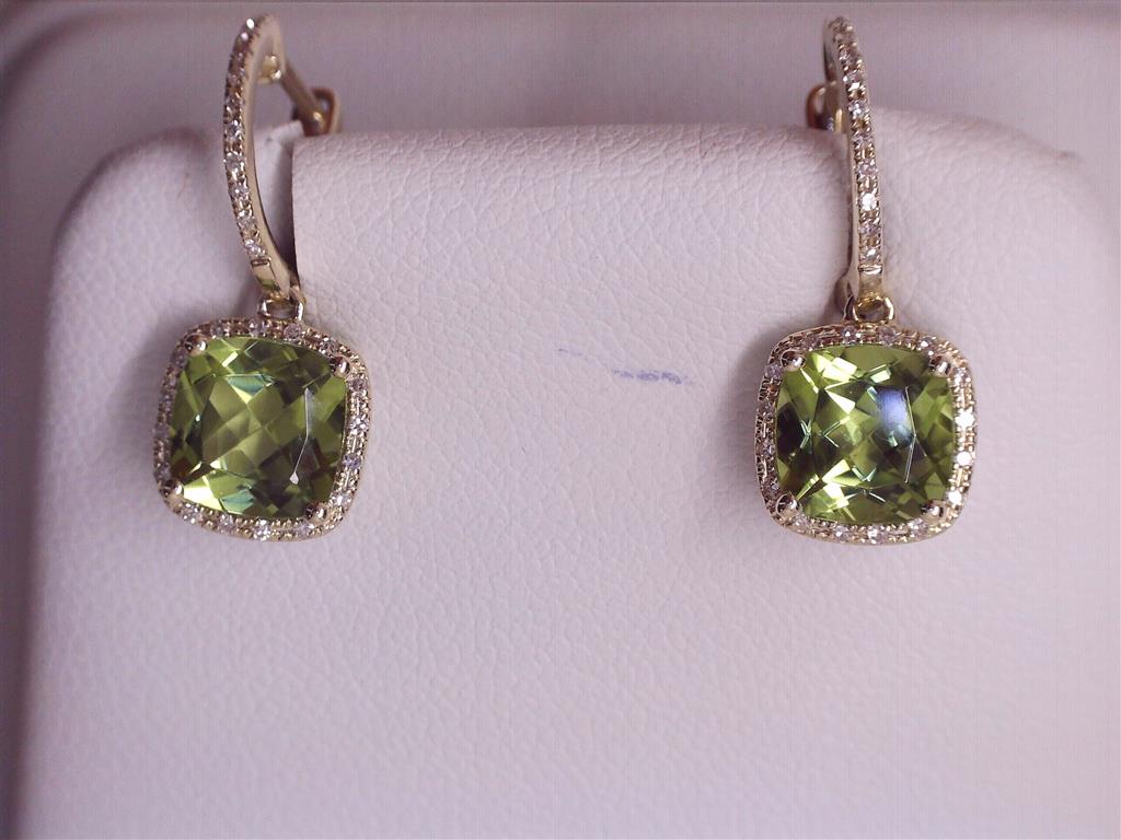 LADY'S YELLOW 14 KARAT DANGLE HALO EARRINGS WITH 0.16TW ROUND DIAMONDS AND OTHER PERIDOTS