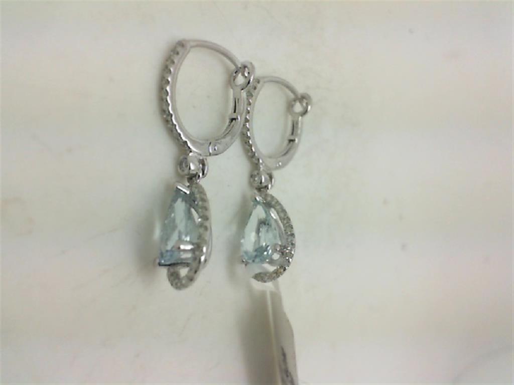 LADY'S WHITE 14 KARAT DROP EARRINGS WITH 0.42TW ROUND DIAMONDS AND 2= PEAR AQUAMARINE