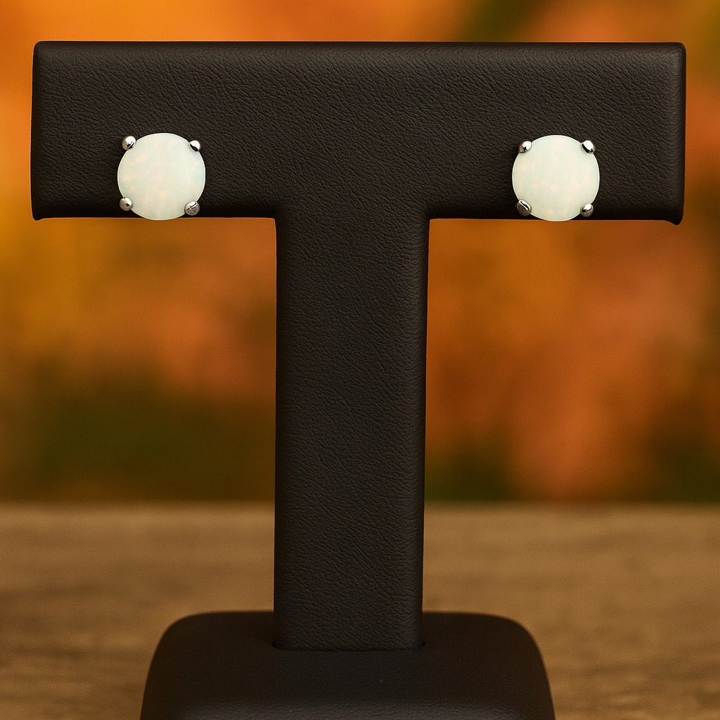 Timeless and versatile, these 5MM Opal Stud Earrings in 14K white gold are the perfect touch of understated elegance. Each earring features a luminous round opal, capturing a delicate play of pastel color that shifts beautifully with the light.