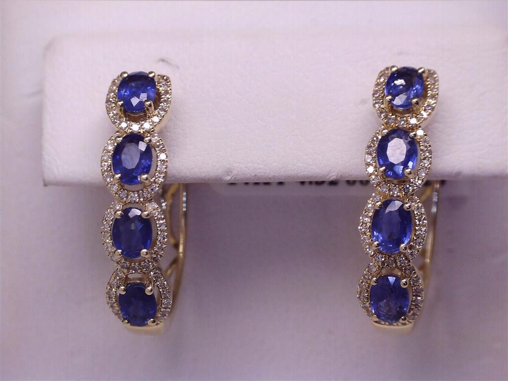 LADY'S YELLOW 14 KARAT MEDIUM HOOP EARRINGS WITH 0.30TW ROUND DIAMONDS AND OVAL SAPPHIRES