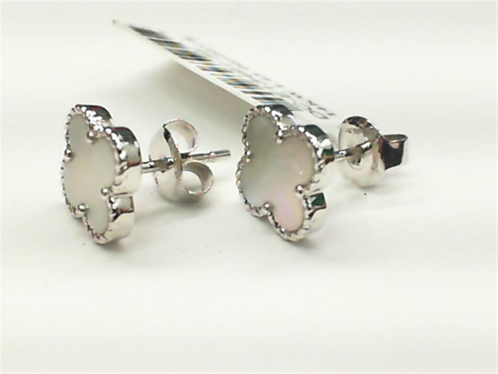 LADY'S 14 KARAT WHITE GOLD ROPE EDGE CLOVER STUD EARRINGS WITH 2= CLOVER MOTHER OF PEARLS