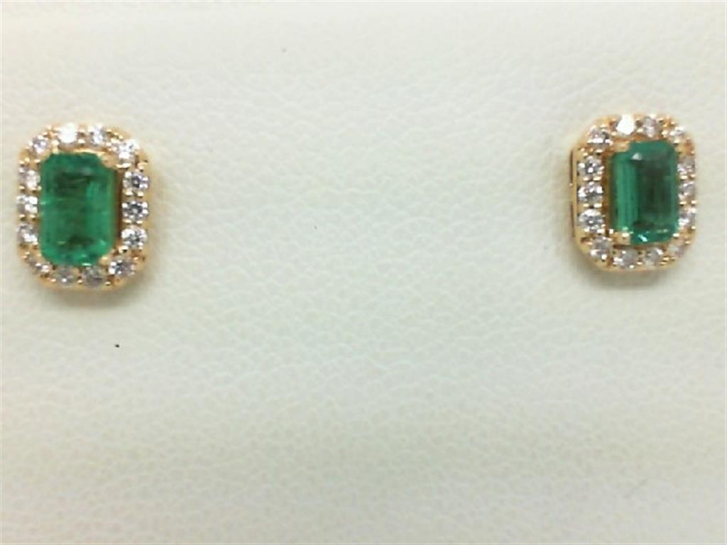 LADY'S YELLOW 14 KARAT HALO EMERALDS CENTER DIAMOND STUD EARRINGS WITH = 0.20TW **DUE TO THE SETTING STYLE OF THESE EARRINGS THE LOSS OF STONES MAY BE EXPECTED FROM TIME TO TIME.**
