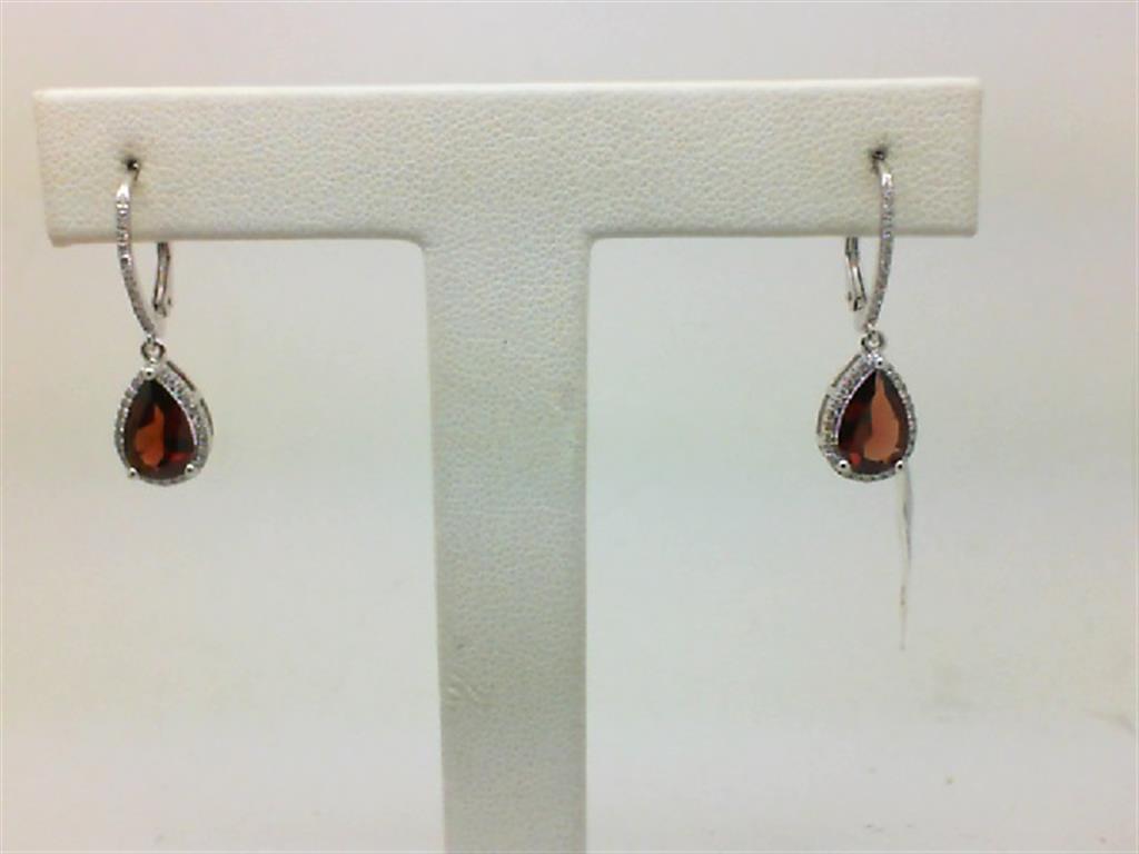 LADY'S WHITE 14 KARAT DROP EARRINGS WITH 0.22TW ROUND DIAMONDS AND PEAR GARNETS