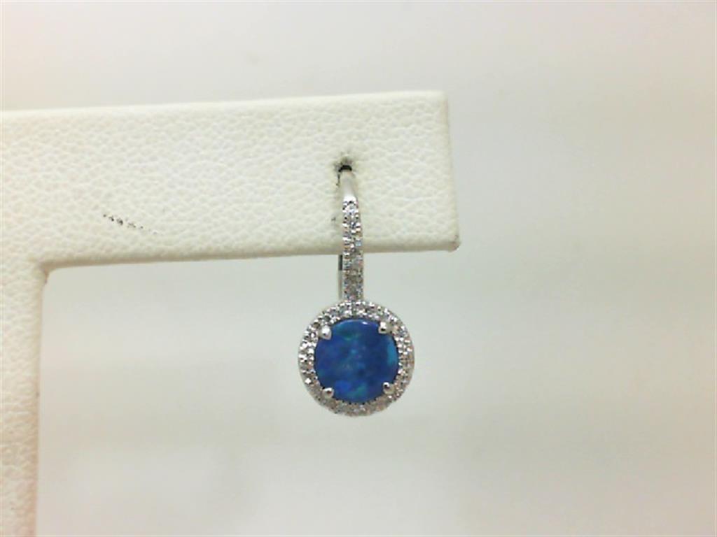 LADY'S WHITE 14 KARAT LEVER BACK EARRING EARRINGS WITH 0.14TW ROUND DIAMONDS AND ROUND OPALS