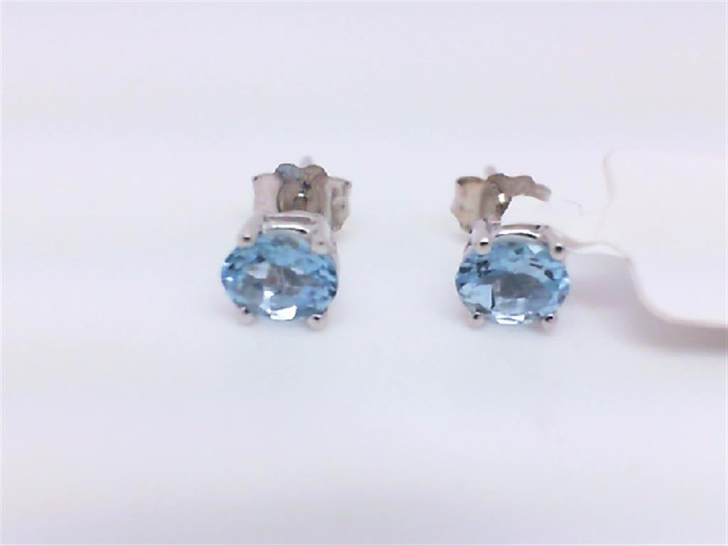 LADY'S WHITE 14 KARAT STUDS EARRINGS WITH 2= OVAL AQUAMARINES