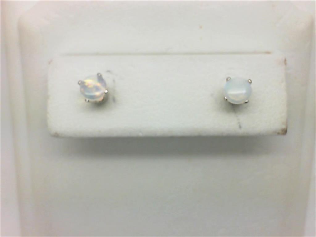 LADY'S WHITE 14 KARAT STUD EARRINGS WITH 4MM ROUND OPALS