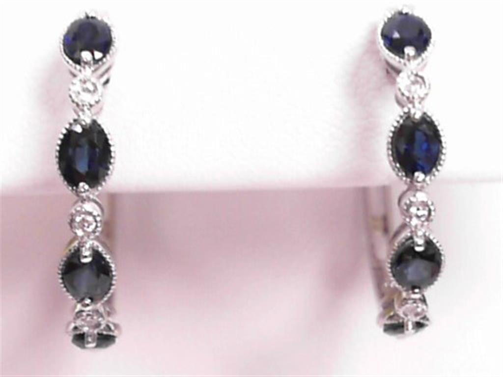 LADY'S WHITE 14 KARAT MEDIUM HOOP EARRINGS WITH 0.06TW ROUND DIAMONDS AND 1.94TW OVAL SAPPHIRES