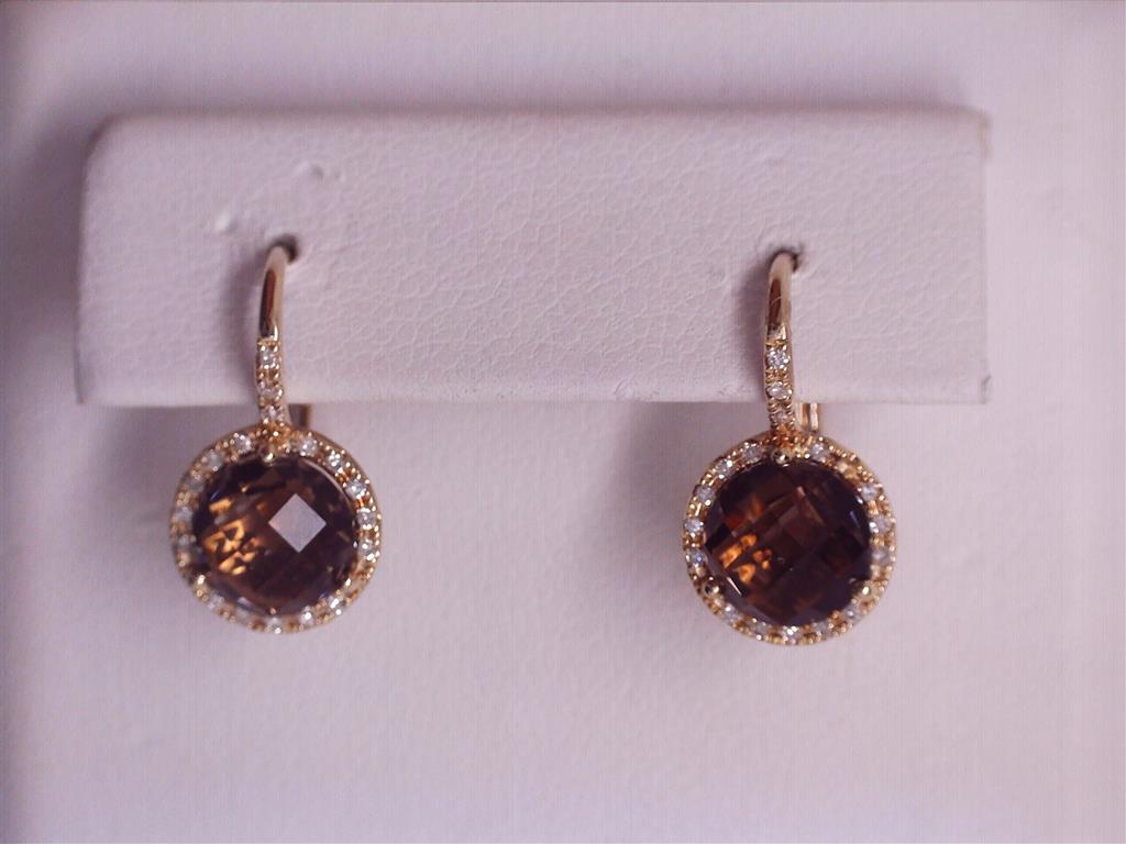 LADY'S YELLOW 14 KARAT LEVERBACK HALO EARRINGS WITH 0.10TW ROUND DIAMONDS AND OTH SMOKEY TOPAZS