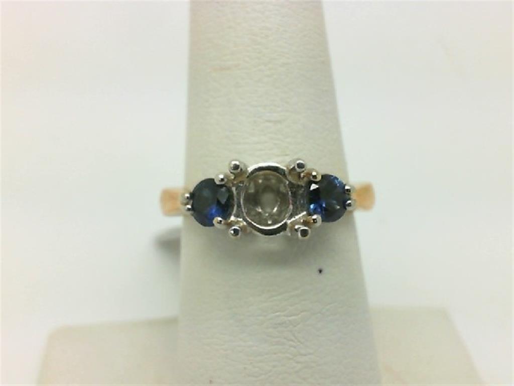LADY'S ROSÉ 14 KARAT 3 STONE FASHION RING WITH 2 = ROUND SAPPHIRES **DUE TO THE MICRO SIZED PRONGS ON THIS STYLE RING THE LOSS OF DIAMONDS FROM TIME TO TIME IS EXPECTED.**