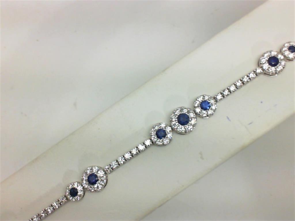 LADY'S WHITE 14 KARAT TENNIS BRACELET WITH 2.57TW ROUND DIAMONDS AND ROUND SAPPHIRES **DUE TO THE MICRO SIZED PRONGS ON THIS STYLE BRACELET THE LOSS OF DIAMONDS FROM TIME TO TIME IS EXPECTED.**