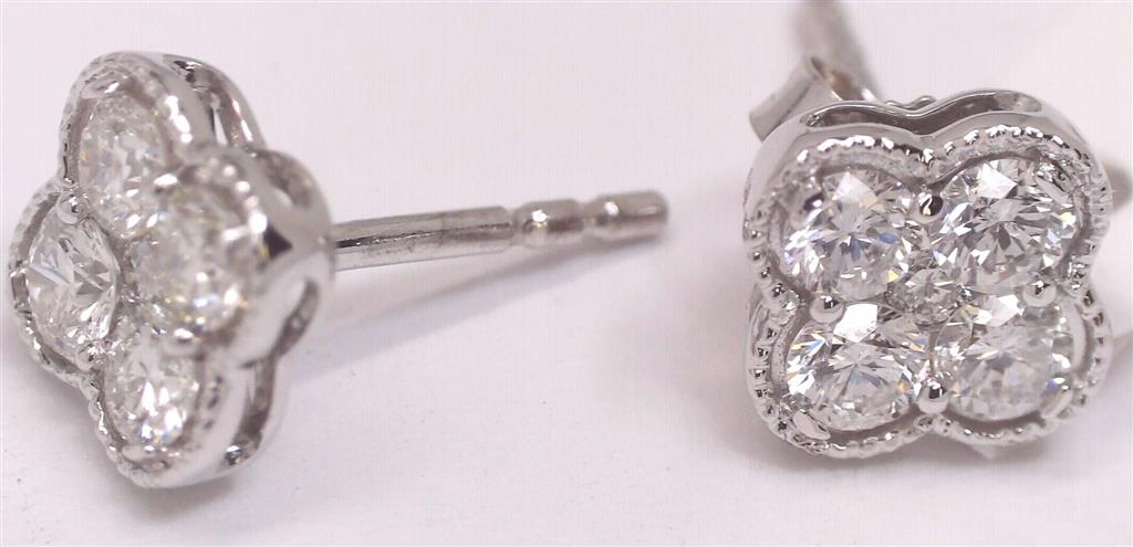 LADY'S WHITE 14 KARAT MILGRAIN CLOVER STUD EARRINGS WITH 0.50TW ROUND DIAMONDS