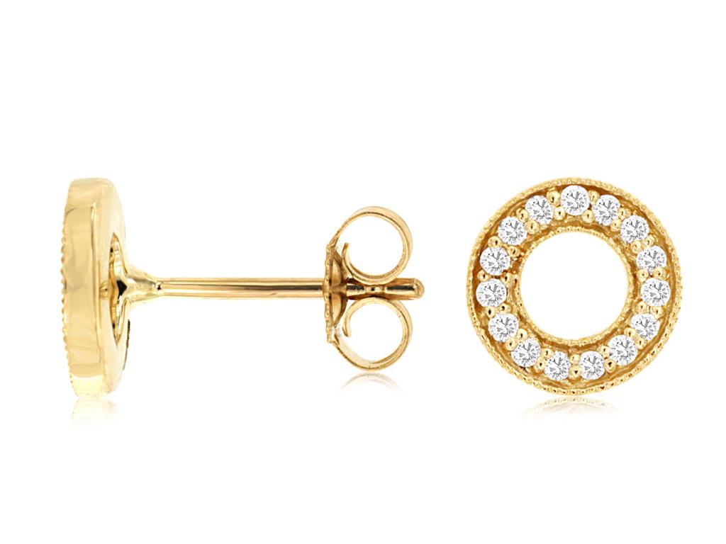 LADY'S YELLOW 14 KARAT HALO STUD RING WITH 0.18TW ROUND DIAMONDS