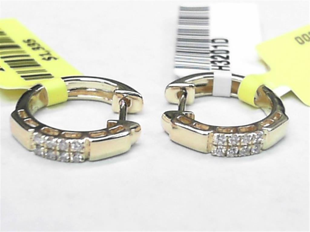 LADY'S YELLOW 14 KARAT HUGGIE EARRINGS WITH = 0.10TW ROUND DIAMONDS