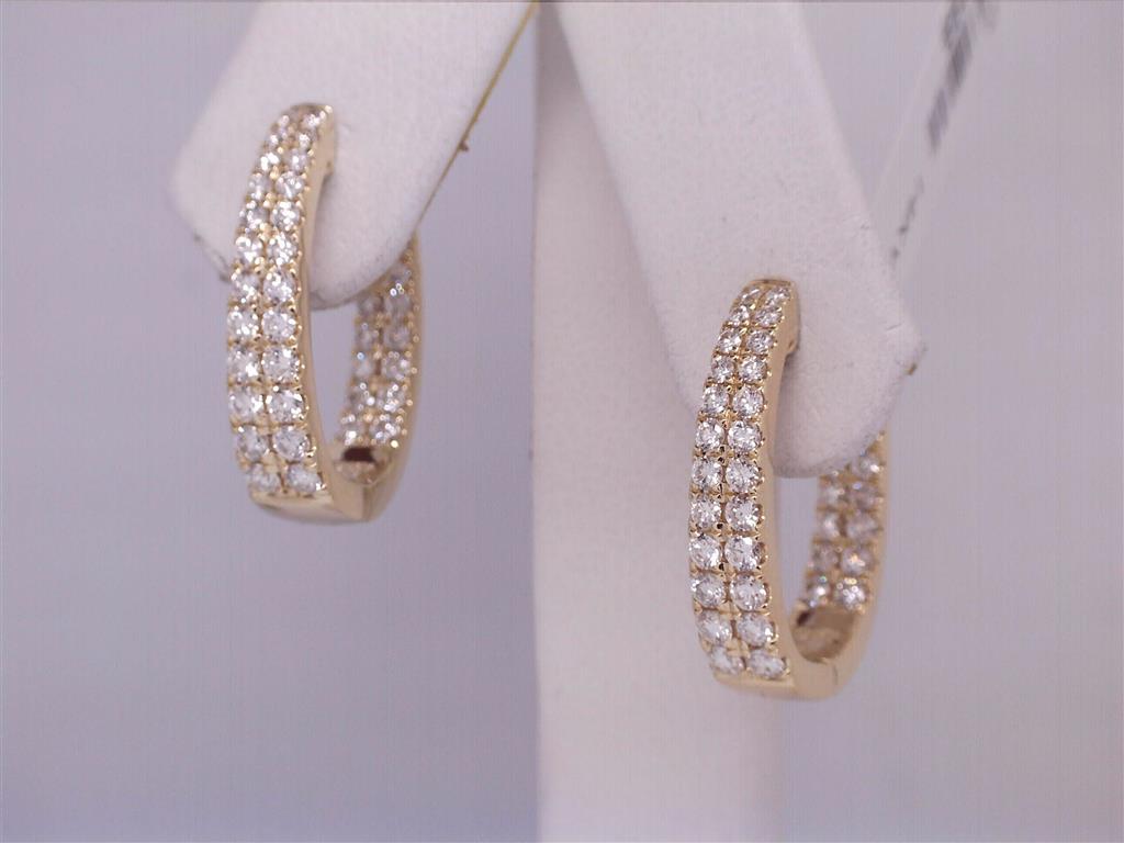 LADY'S YELLOW 14 KARAT 2 ROW INSIDE OUT EARRINGS WITH 1.50TW ROUND DIAMONDS