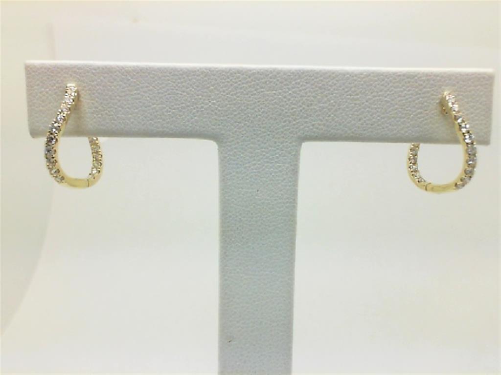 LADY'S YELLOW 14 KARAT SMALL WAVY HOOP EARRINGS WITH 0.52TW ROUND DIAMONDS