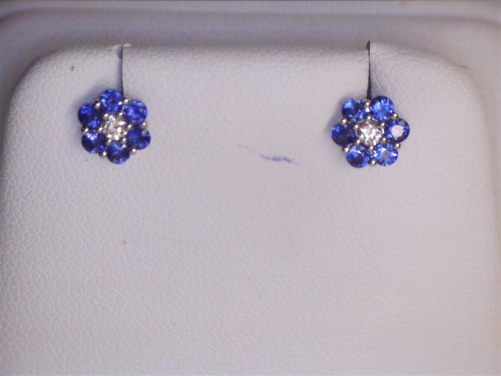 LADY'S WHITE 14 KARAT FLOWER STUD EARRINGS WITH 0.12TW ROUND DIAMONDS AND ROUND SAPPHIRES