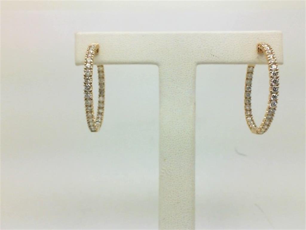 LADY'S YELLOW 14 KARAT INSIDE-OUT HOOP EARRINGS WITH = 3.00TW ROUND DIAMONDS