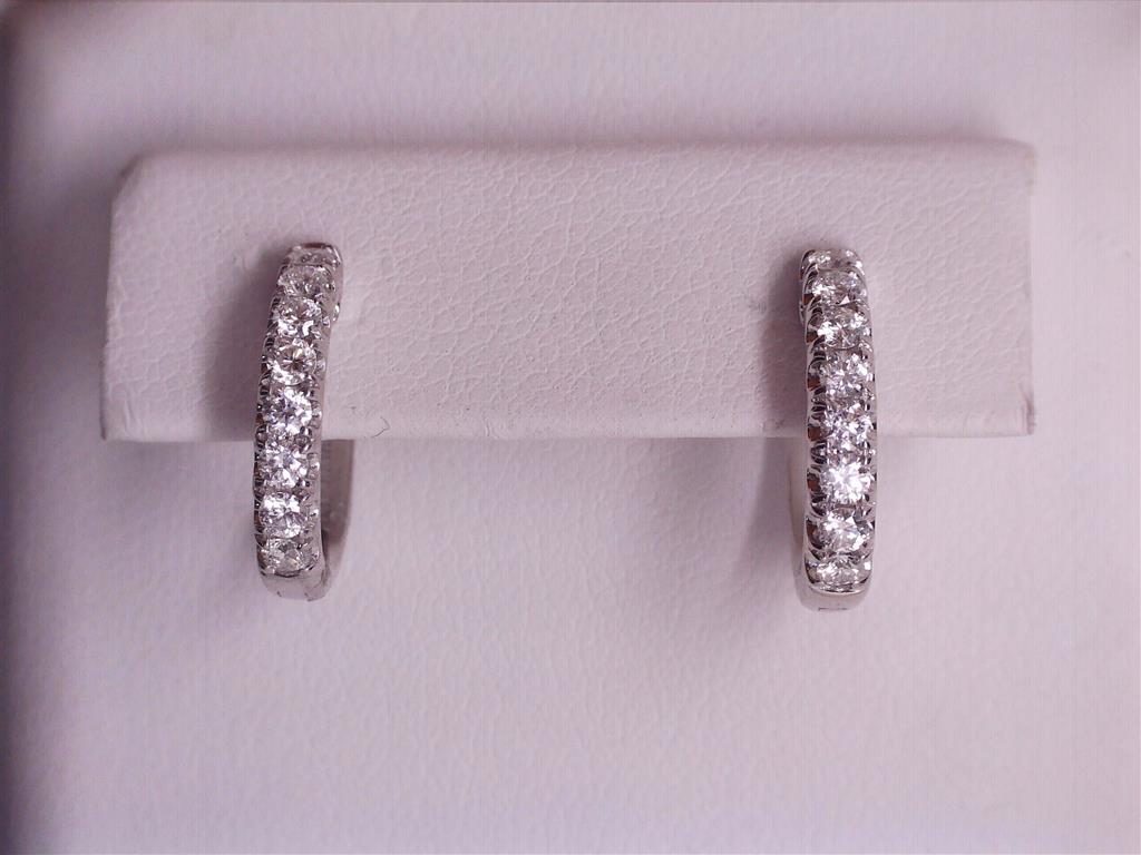 LADY'S WHITE 14 KARAT SMALL HOOP EARRINGS WITH 0.50TW ROUND DIAMONDS