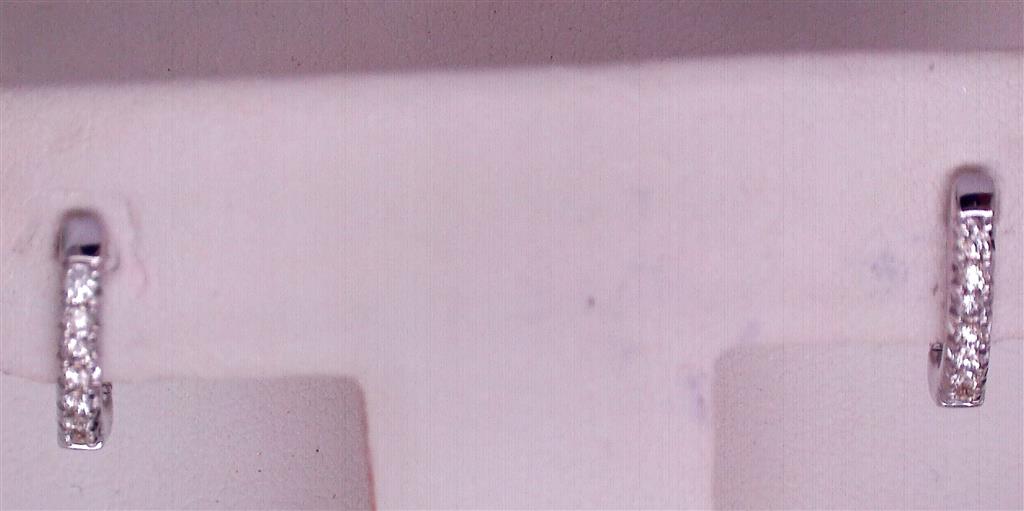 LADY'S WHITE 14 KARAT SMALL HOOP EARRINGS WITH = 0.23TW ROUND DIAMONDS