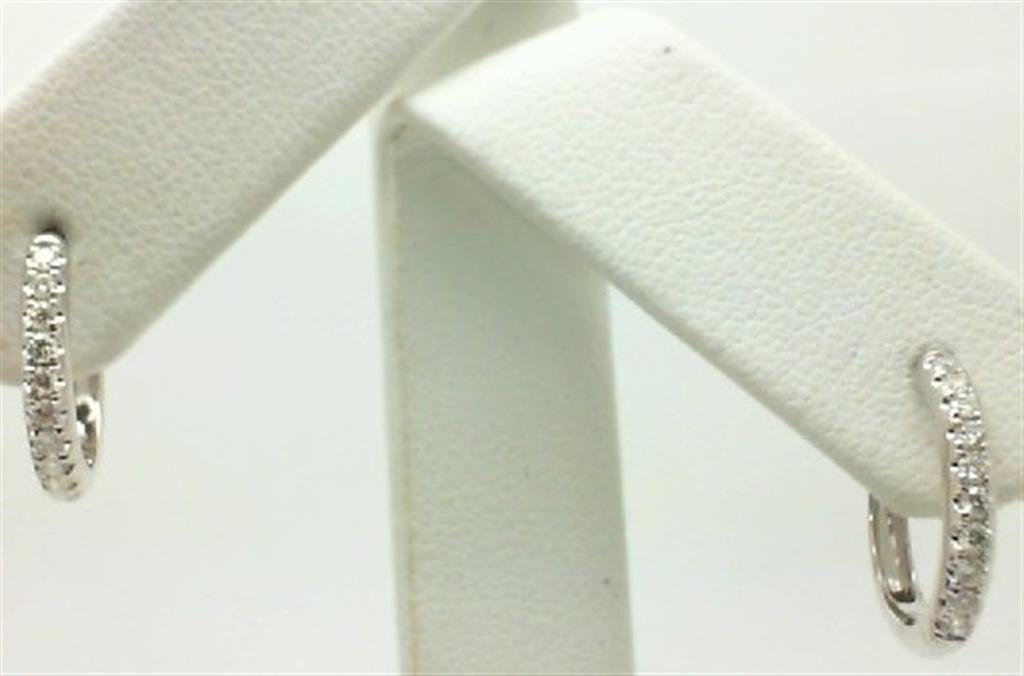 LADY'S WHITE 14 KARAT HUGGIE EARRINGS WITH = 0.25TW ROUND DIAMONDS **DUE TO THE SETTING STYLE OF THESE EARRINGS THE LOSS OF STONES MAY BE EXPECTED FROM TIME TO TIME.**