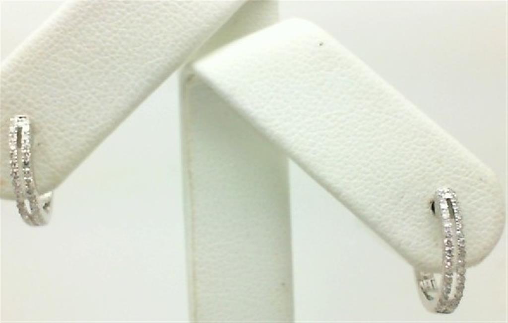LADY'S WHITE 14 KARAT HUGGIE EARRINGS WITH = 0.19TW ROUND DIAMONDS **DUE TO THE SETTING STYLE OF THESE EARRINGS THE LOSS OF STONES MAY BE EXPECTED FROM TIME TO TIME.**