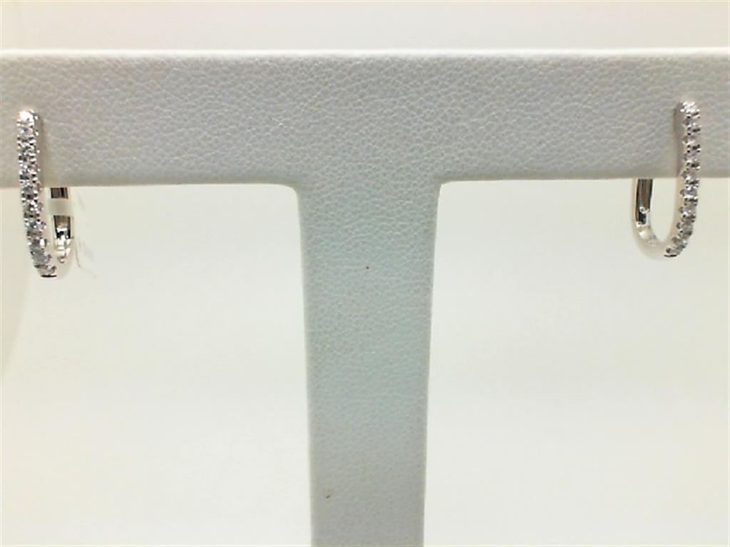 LADY'S WHITE 14 KARAT SMALL ELONGATED HOOP EARRINGS WITH 0.22TW ROUND DIAMONDS
