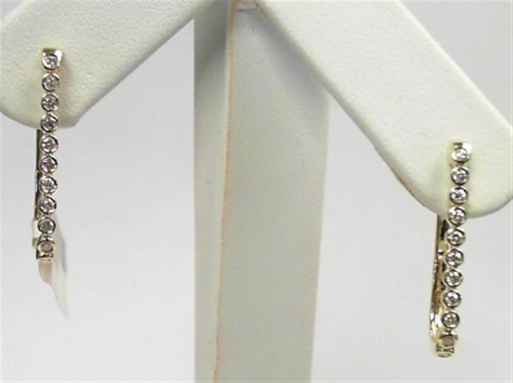 LADY'S YELLOW 14 KARAT BEZEL SET HOOP EARRINGS WITH 0.25TW ROUND DIAMONDS