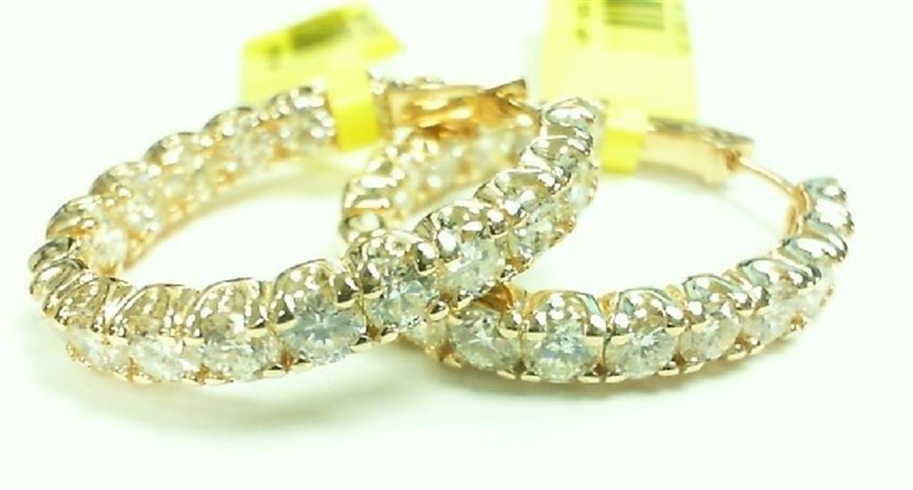 LADY'S YELLOW 14 KARAT OVAL HOOP EARRINGS WITH = 5.14TW ROUND DIAMONDS