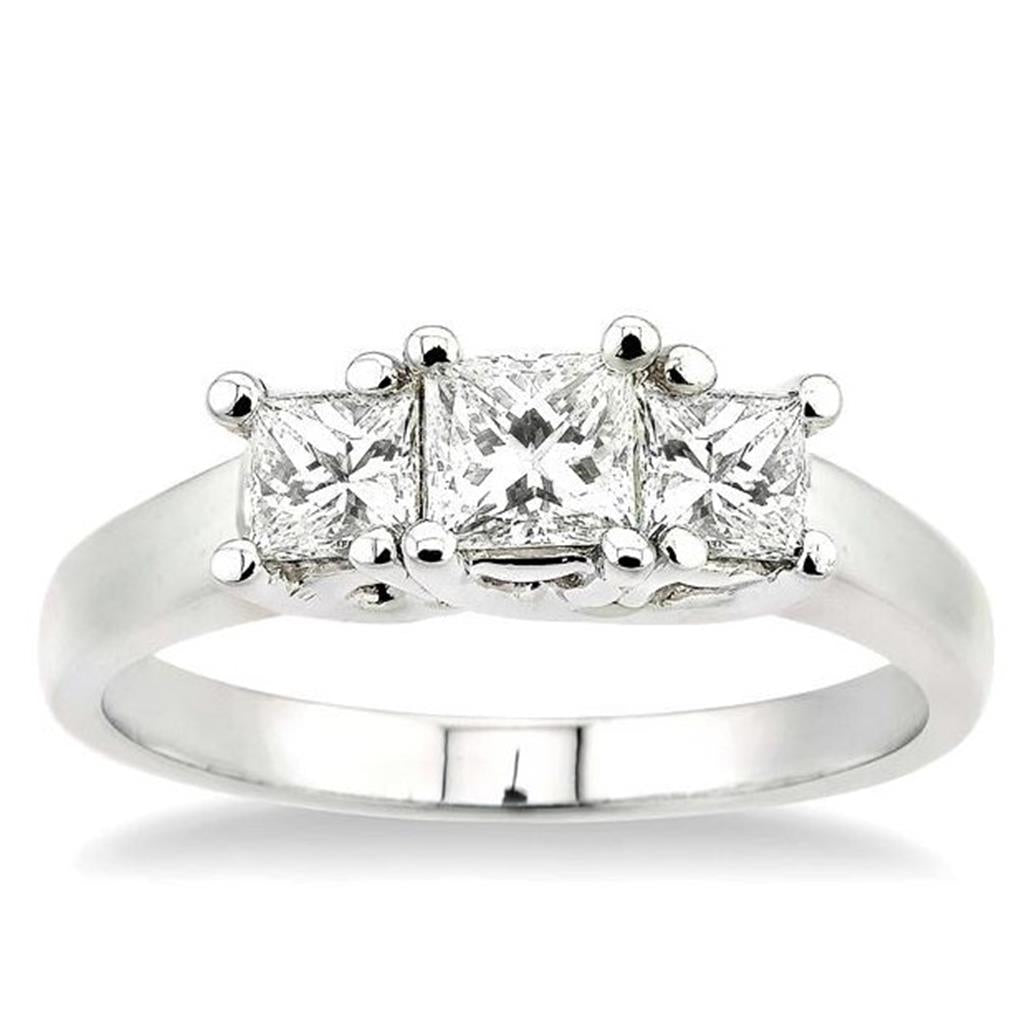 LADY'S WHITE 14 KARAT ENGAGEMENT RING WITH 3=1.00TW PRINCESS J VSI DIAMONDS.