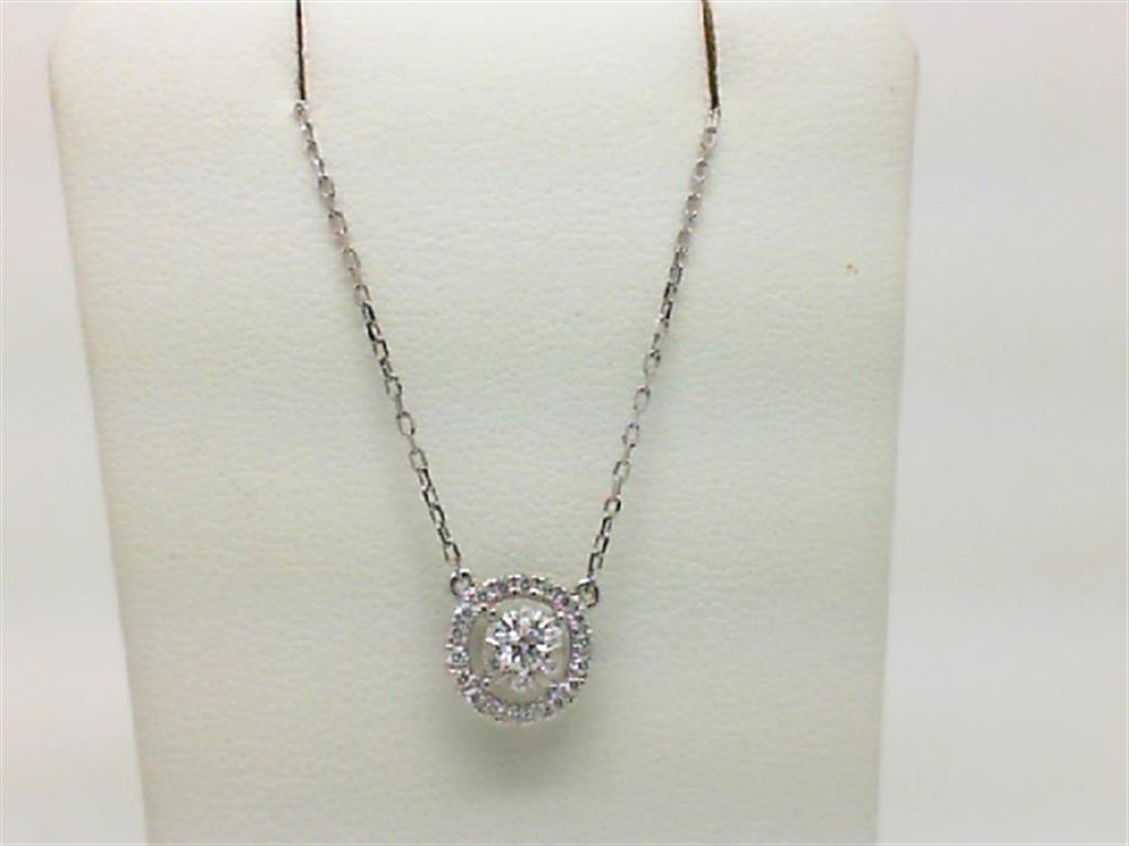 LADY'S WHITE 14 KARAT CLUSTER HALO PENDANT WITH 0.25TW ROUND DIAMONDS **DUE TO THE SETTING STYLE OF THESE PENDANT THE LOSS OF STONES MAY BE EXPECTED FROM TIME TO TIME.**