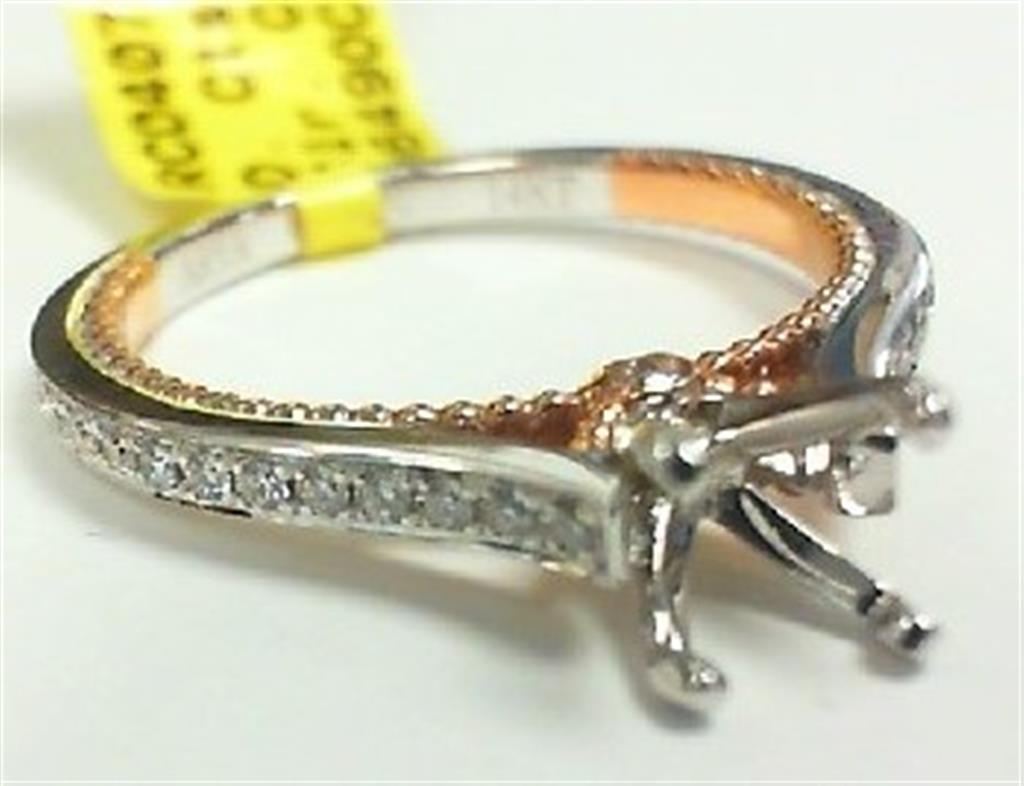 TWO-TONE 14 KARAT BEAD LIKE STYLE CATHEDRAL SEMI-MOUNT RING WITH = 0.50TW ROUND DIAMONDS