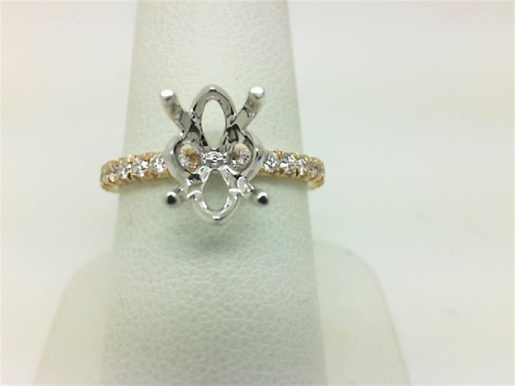 14 KARAT TWO-TONE SEMI-MOUNT RING WITH 0.49TW ROUND DIAMONDS. DUE TO THE MICRO SIZED PRONGS ON THIS STYLE RING THE LOSS OF DIAMONDS FROM TIME TO TIME IS EXPECTED.