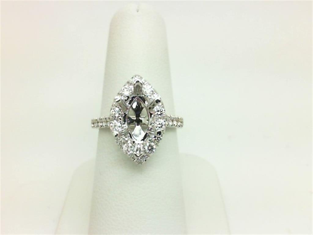 WHITE 14 KARAT MARQUIS HALO SEMI-MOUNT RING WITH 0.70TW ROUND DIAMONDS **DUE TO THE MICRO SIZED PRONGS ON THIS STYLE RING THE LOSS OF DIAMONDS FROM TIME TO TIME IS EXPECTED.**