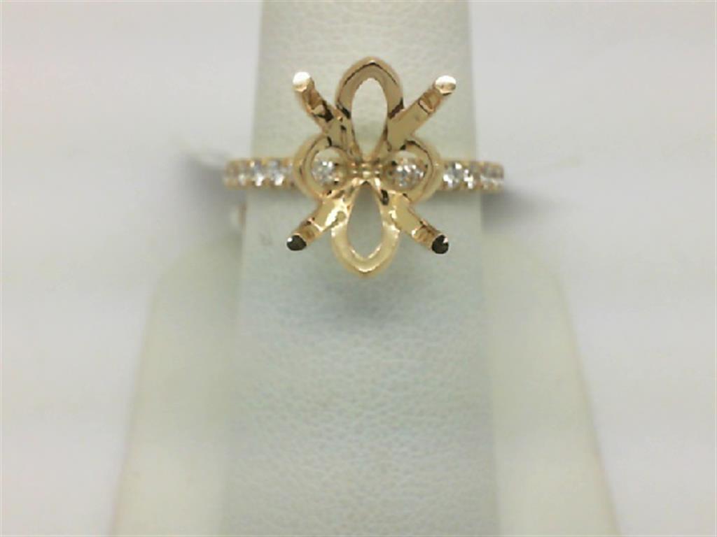YELLOW 14 KARAT SEMI-MOUNT RING WITH 0.49TW ROUND DIAMONDS. DUE TO THE MICRO SIZED PRONGS ON THIS STYLE RING THE LOSS OF DIAMONDS FROM TIME TO TIME IS EXPECTED.