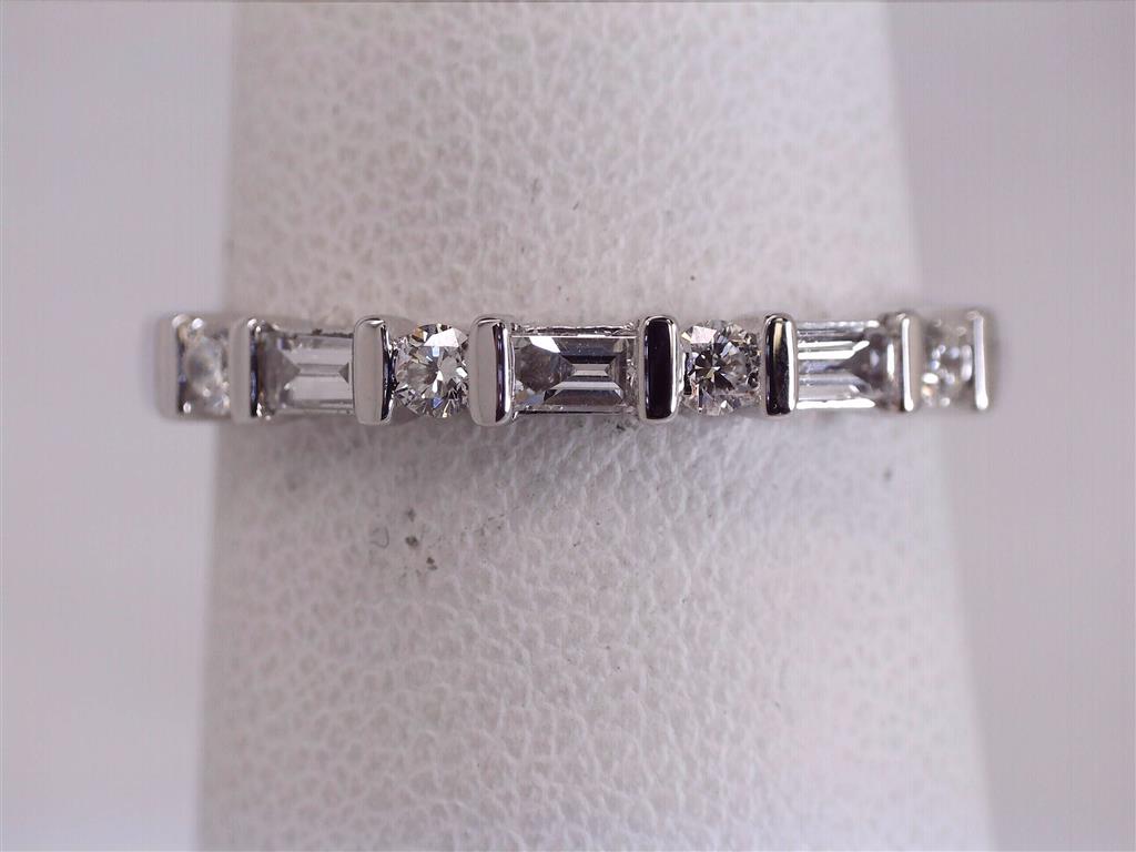 LADY'S WHITE 14 KARAT WEDDING BAND WITH 0.30TW VARIOUS SHAPES DIAMONDS