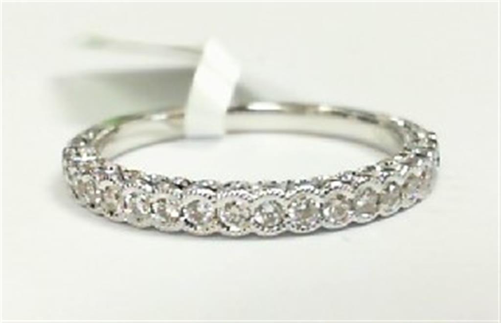 LADY'S WHITE 14 KARAT MILGRAIN AND HAND FILIGREE DESIGN HALF ANNIVERSARY WEDDING BAND WITH 0.23TW ROUND DIAMONDS