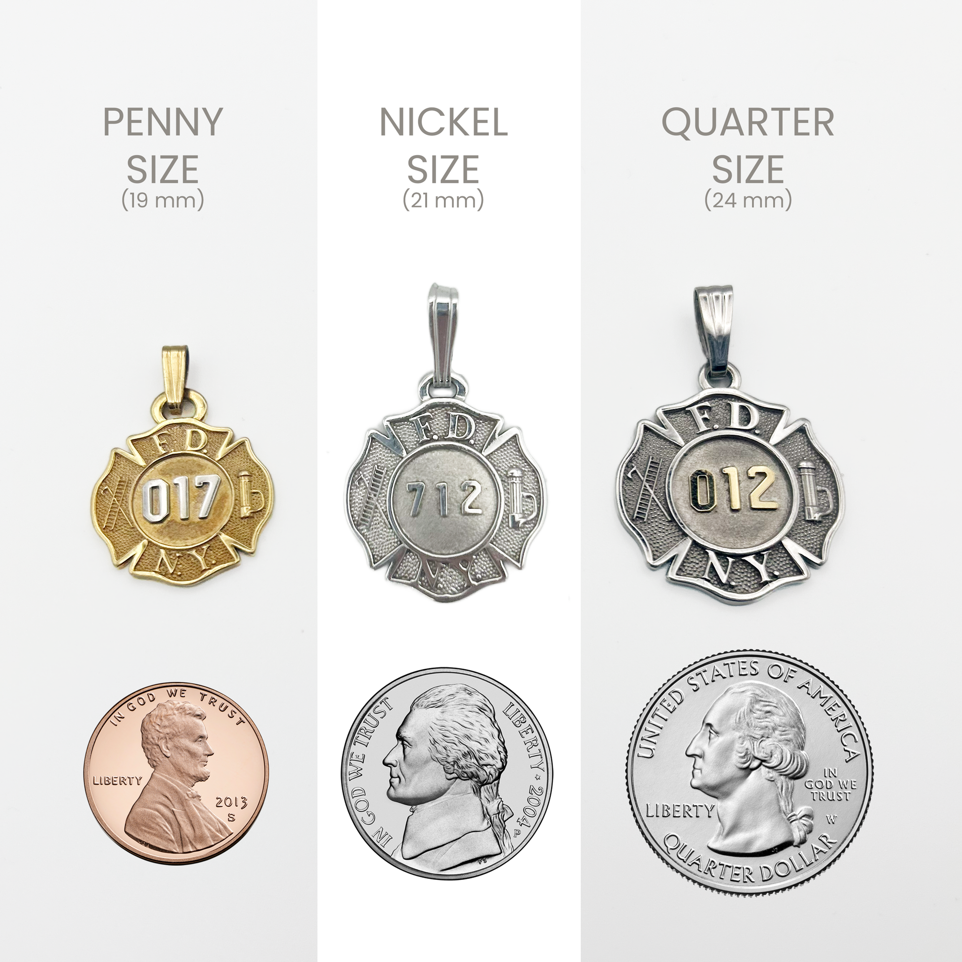 Available in three sizes, Penny, Nickel, or Quarter, this pendant perfectly balances craftsmanship and sentiment. Whether you wear it daily or keep it as a cherished heirloom, it’s a lasting symbol of courage, service, and pride.