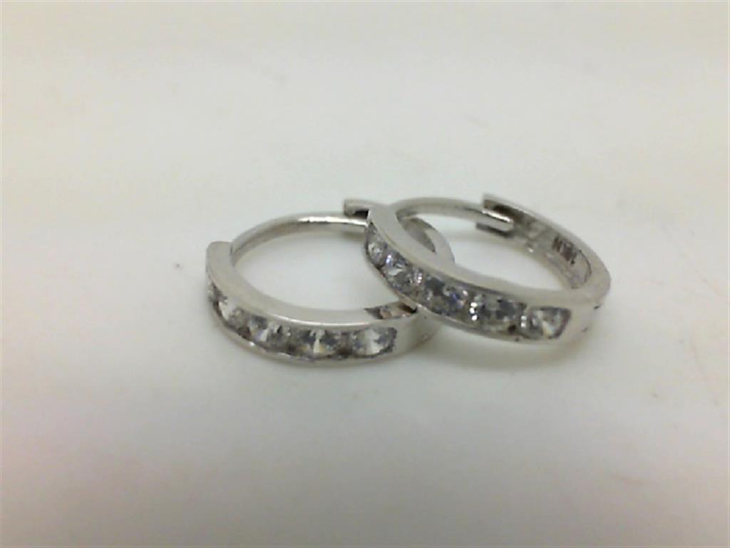 LADY'S WHITE 14 KARAT HUGGIE EARRINGS WITH ROUND CUBIC ZIRCONIAS