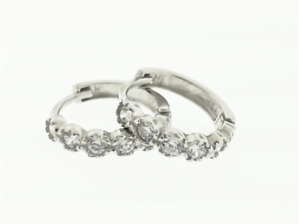 LADY'S WHITE 14 KARAT HUGGIE EARRINGS WITH ROUND CUBIC ZIRCONIAS