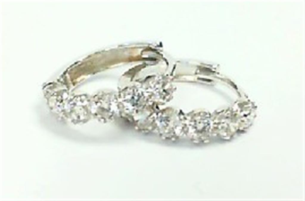 LADY'S WHITE 14 KARAT MEDIUM HUGGY EARRINGS WITH ROUND CUBIC ZIRCONIAS