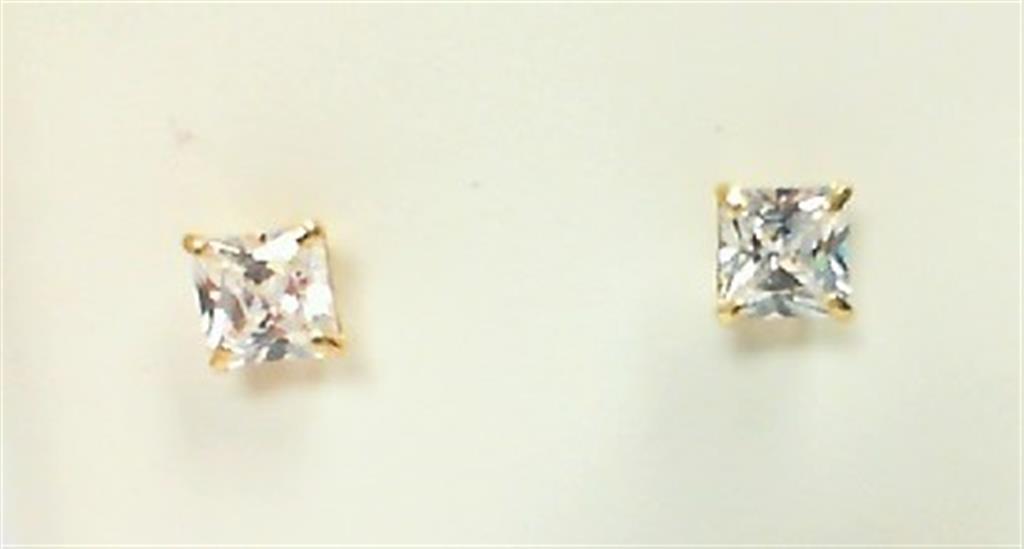 LADY'S YELLOW 14 KARAT 4MM BASKET STUD EARRINGS WITH 2= SQUARE CUBIC ZIRCONIAS