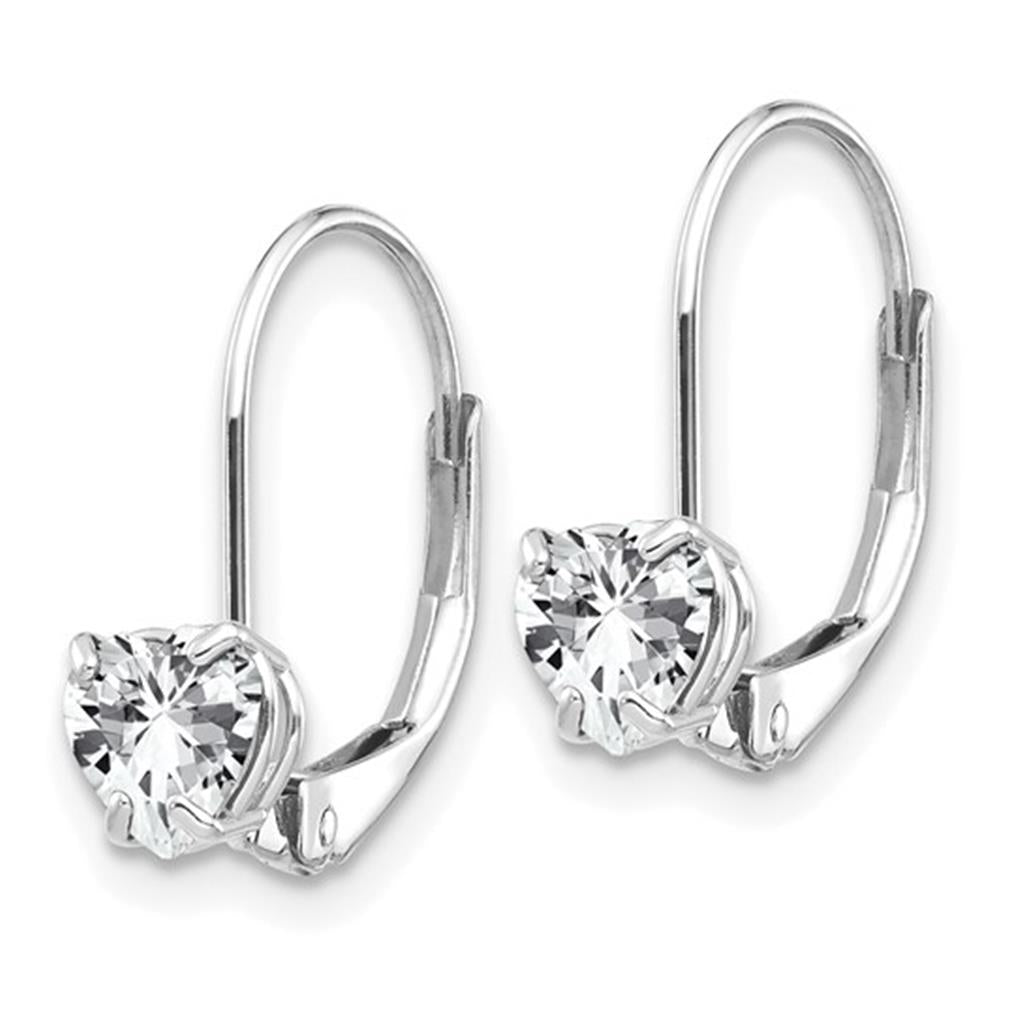 LADY'S WHITE 14 KARAT C.Z. HEART LEVERBACK EARRINGS