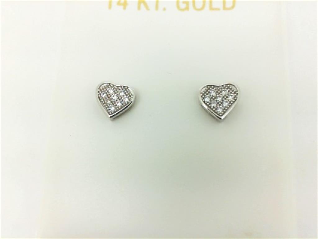 LADY'S WHITE 14 KARAT CZ HEART STUD EARRINGS