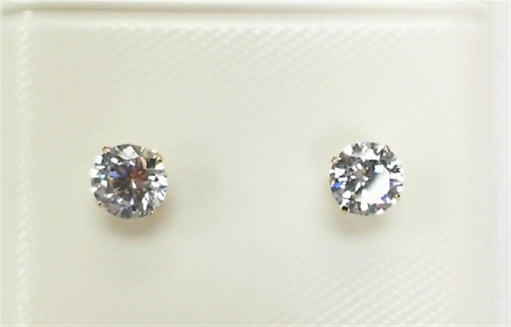 LADY'S YELLOW 14 KARAT ROUND BASKET STUD EARRINGS WITH ROUND CUBIC ZIRCONIAS