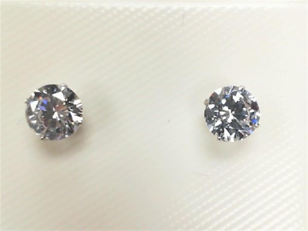 LADY'S WHITE 14 KARAT ROUND 5MM BASKET STUD EARRINGS WITH ROUND CUBIC ZIRCONIAS