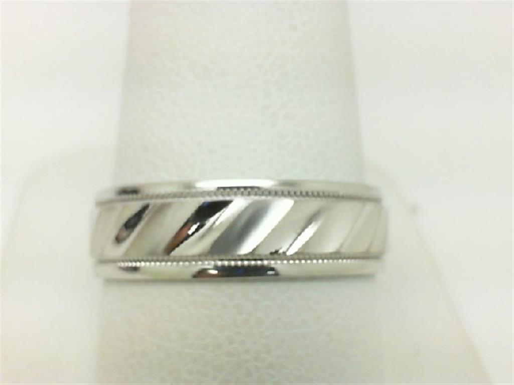 GENT'S WHITE 14 KARAT DIAMOND CUT 6MM FLAT STEP CARVED WEDDING BAND