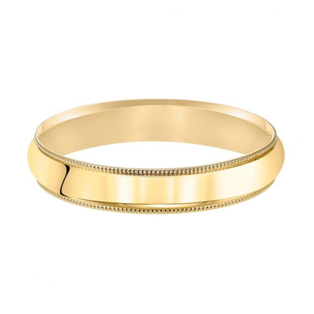 GENT'S YELLOW 14 KARAT MILGRAIN 4MM WEDDING BAND.